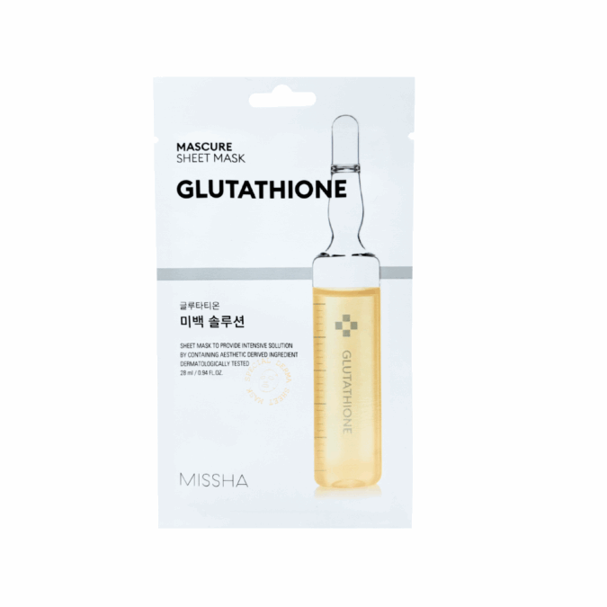Missha – Mascure Sheet Mask – Glutathione to wyjątkowa maska w płachcie, stworzona z myślą o skórze wymagającej wyrównania kolorytu, redukcji przebarwień i przywrócenia promiennego wyglądu. Jej formuła została opracowana tak, aby kompleksowo wspierać cerę w procesie regeneracji, rozjaśniania i nawilżania, a przy tym działać łagodząco na podrażnienia.